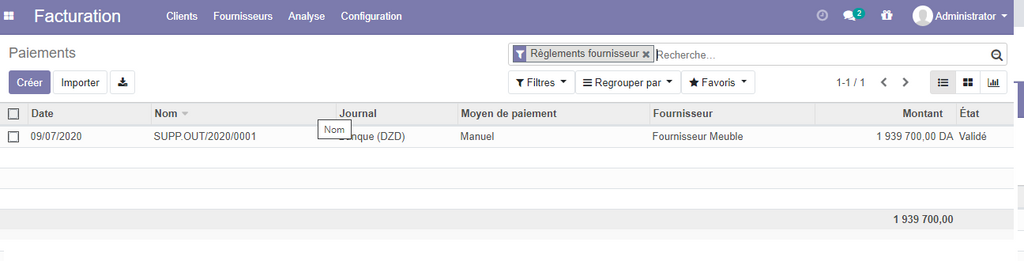Une fois la facture établie, il est possible de gérer les payements fournisseurs , ou bien l'entreprise règle la totalité de la facture et la facture sera marquée comme payée, ou elle paye partiellement la facture.