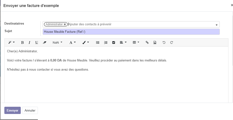Dans la facture créé cliquer sur le bouton enregistrer un paiement . une fenêtre sera affiché pour saisir le montant payé.