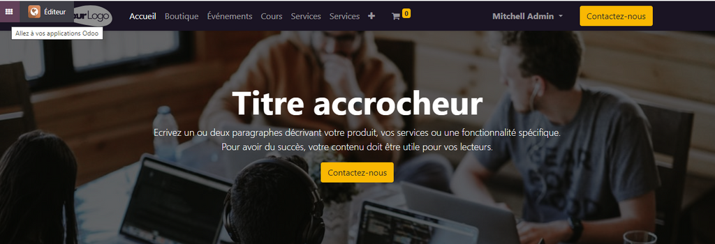 Après le traitement de ces étapes, nous serons prêt à utiliser l’application Site Web d’Odoo pour enfin créer notre site formidable, facilement personnalisable, en quelques clics seulement !