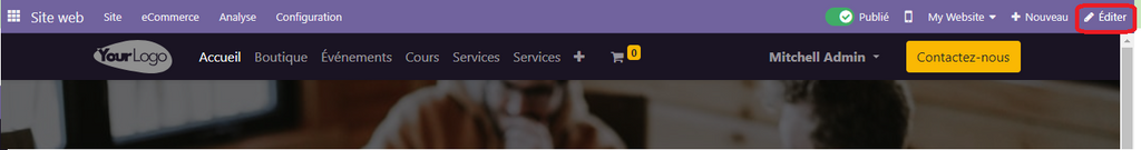 Allez dans le menu Site Web de votre application, ensuite cliquez en haut à droite sur Editer.