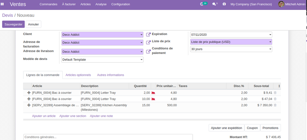 17- Possibilité d'appliquer une remise total sur toute les lignes de la commande /devis.