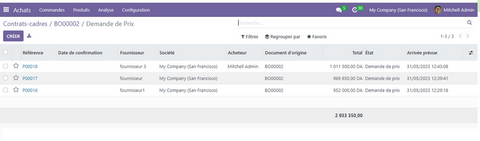 Dans cette partie, nous allons utiliser les contrats cadres, pour gérer des cas plus avancés d’appels d’Offre, ou des commandes à livraison échelonnées. ...................................................