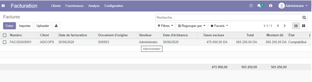Dans notre exemple, cliquer sur la facture créé pour la modifier .