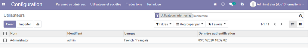 Par la suite , toujours dans la partie configuration, cliquer sur le sous menu société et utilisateurs puis choisissez utilisateurs .