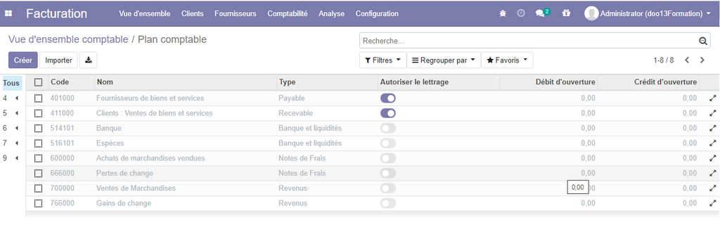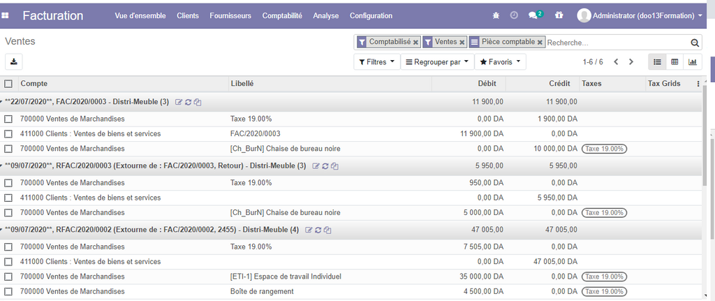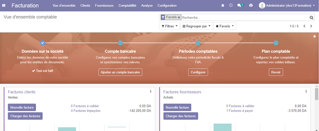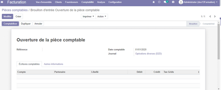 A présent, nous avons configurer les paramètres de base , nous pouvons donc utiliser normalement notre module de comptabilité.