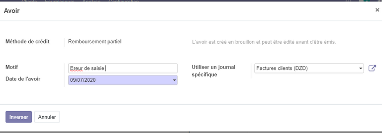 mettez une note pour la raison de l'avoir , puis cliquer sur enregistrer un avoir sera donc créé .