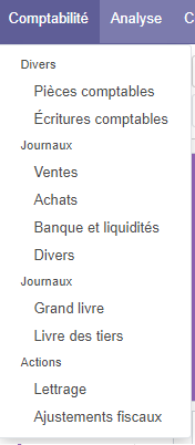 Les autres fonctionnalités de comptabilités ne sont pas affichées.