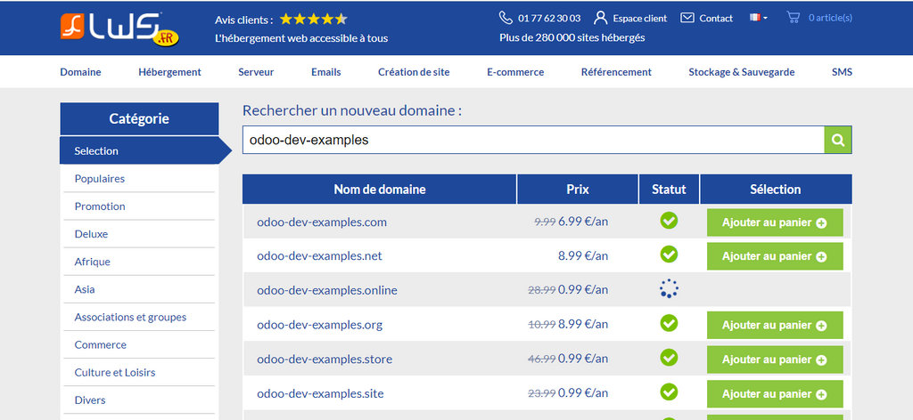 Revenons à notre cas pratique, nous allons voir comment réserver un nom de domaine toujours  auprès du fournisseur des services Web LWS , mais la méthode est presque identique pour les autres fournisseurs (ionos, godady, ovh,…).