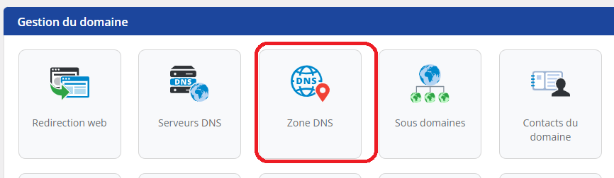 Dans la page qui s’affiche, allez en bas et cliquez sur l’option Zone Dns.