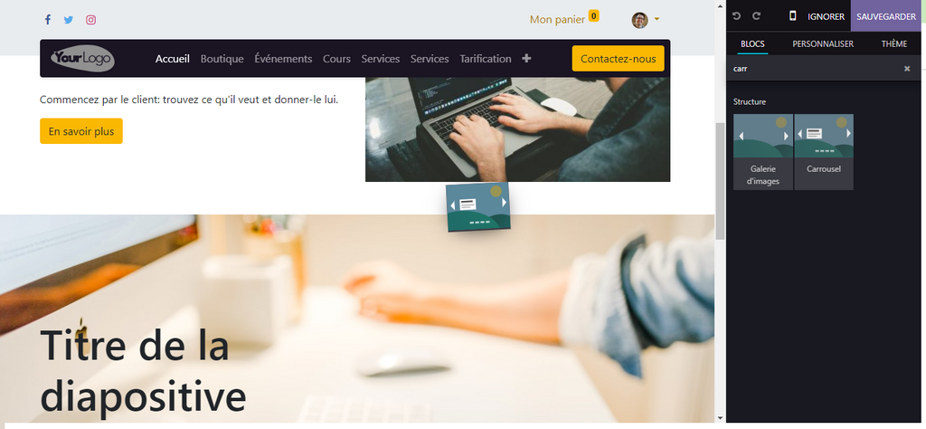 Choisissez un bloc à intégrer, mettez-le à l’emplacement souhaité, personnalisez-le en utilisant les méthodes précédentes, et tout sera prêt pour vous.