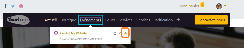 Pour édite le menu principal, cliquer sur un élément du menu principale.