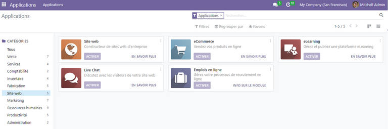 L’une des particularités d’Odoo, est qu’il permet à la fois la gestion des activités internes de l’entreprise, mais aussi Les activités reliées destinées au grand public à travers le site web de l’entreprise.