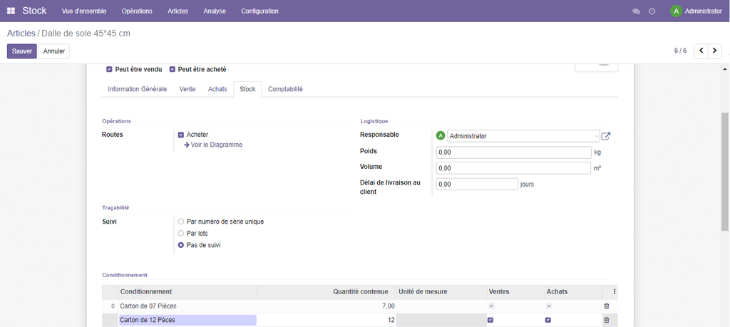 Pour comprendre l’utilité de l’utilisation de colisage, on va créer l’article cité précédemment, ensuite nous allons achetez des quantités et vendre d’autres.