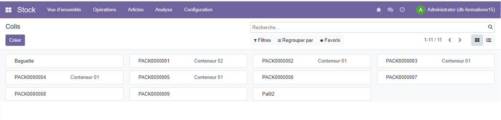 Pour visualiser tous les colis Allez dans l’application Stock Articles Colis.