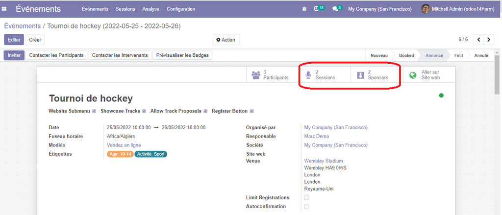 Dans un premier lieu, nous avons activé une fonctionnalité très importante qui permet la gestion des sessions reliés à un évènement, avec la possibilité de les publier sur le site web pour qu’ils soient visible par le grand public.