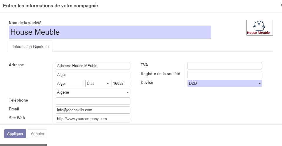 Lors du premier lancement de l’application,nous aurons ,  un assistant, qui nous aide à introduire les informations de base de configuration de notre entreprise .