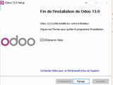 En suivant les instructions du programme d'installation, une denière fenêtre sera affiché vous indiquera qu'odoo 13 est bien installé , vous pouvez le lancer et commencer la découverte d'odoo !