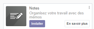 Cliquer sur installer (celui qui contient la description : organiser votre travail avec des mémos ,... :) et patienter le temps qu'odoo installe votre première application!