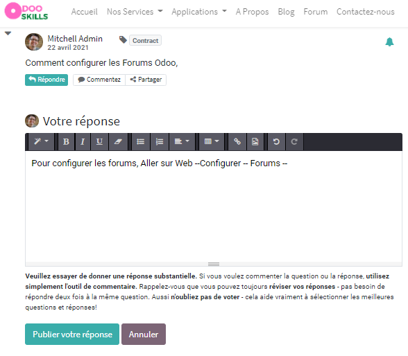 Sur le champ qui s’affiche, introduisez votre réponse puis cliquer sur le bouton publier votre réponse.