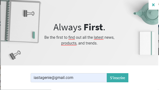 Le widget popup, a exactement le même rôle que le widget block, à l’exception que le message d’inscription sera affiché sous forme popup au lieu d’un formulaire.