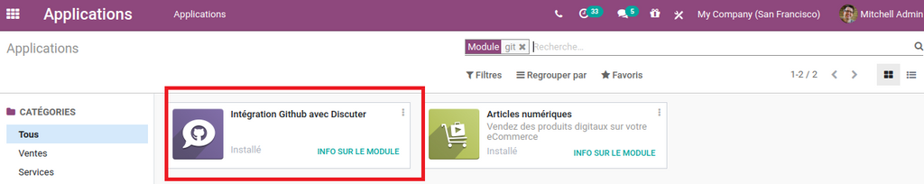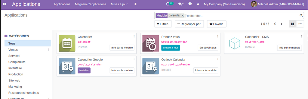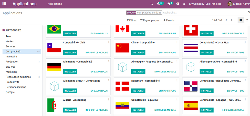 L’amélioration de la vue des applications à d’odoo à installer, en les affichant par catégories, ce qui rend le choix et la sélection des application plus facile et rapide.