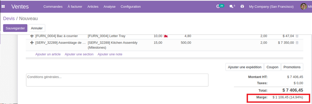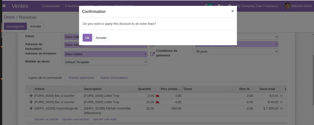 17- Possibilité d'appliquer une remise total sur toute les lignes de la commande /devis.