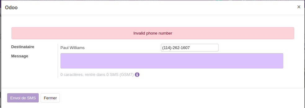 L’ajout du champs validation du Numéro de téléphone , depuis la vues des employés check the SMS Button Mobile (Employee)