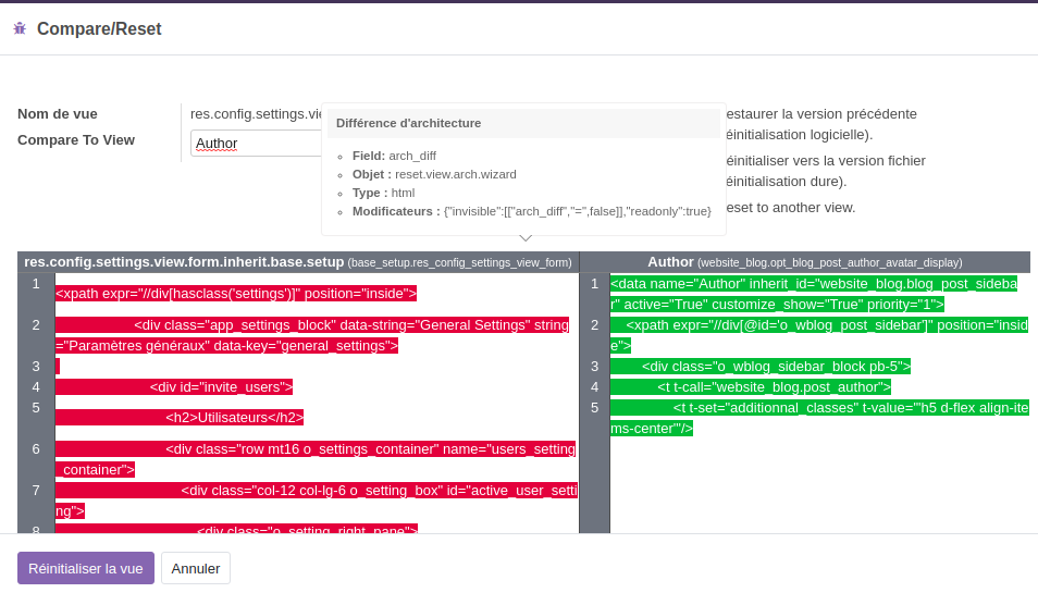 38- Pour les développeurs : possibilité de comparer deux vues (Pour les développeurs)