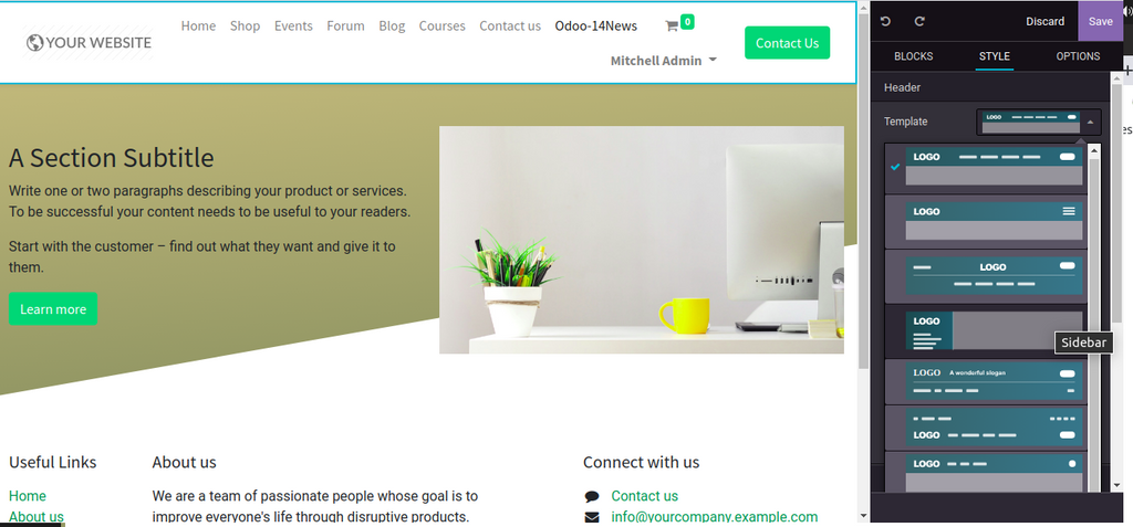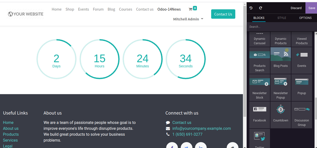 Ci-dessous une liste de widgets et nouveautés apportés par Odoo Dans sa Version odoo 14 , dans la partie Site Web: