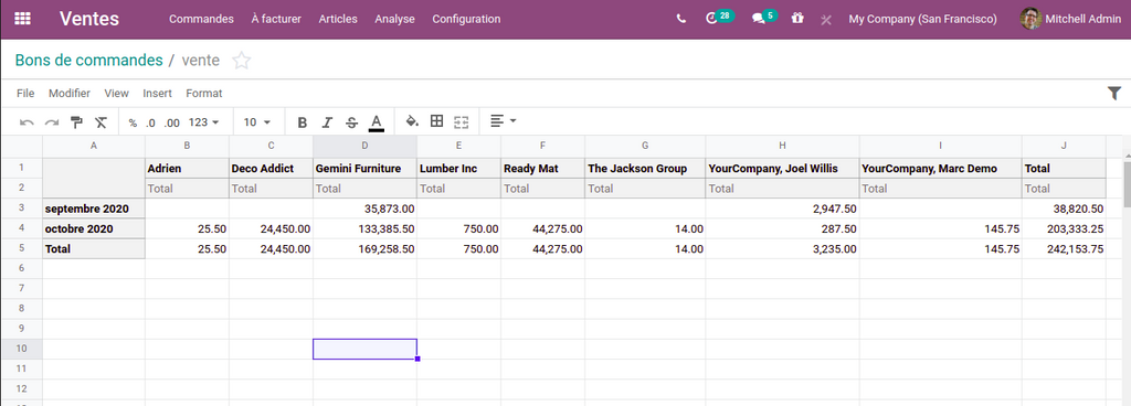 dans les tableaux de bords et d’analyses des différentes applications (CRM, Comptabilité, …) , qui permet de travailler sur la feuille de calcul (comme les feuilles Excel) directement dans la plateforme , sans avoir à importer ou exporter les données .