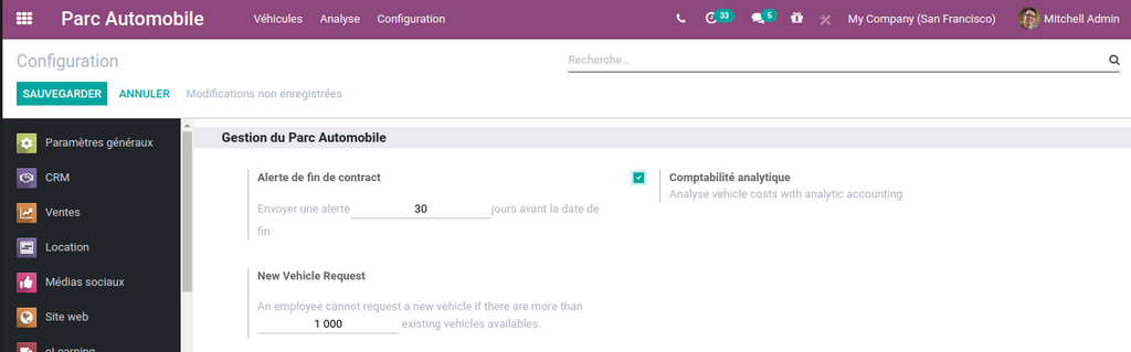 Comptabilité Ajouter la comptabilité analytique pour le module gestion des flottes , pour le suivi des coûts (maintenance , consommation de carburants ,...)