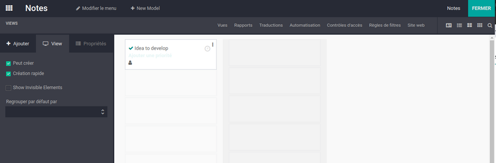 Après activation du mode développeur, Il est maintenant possible d'accéder aux droits d’accès des utilisateurs et des enregistrements depuis l’interface directement.