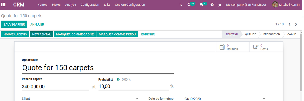 Avec l’ajout du connecteur odoo pour Otement, avec la possibilité de créer une opportunité basé sur ce contact.
