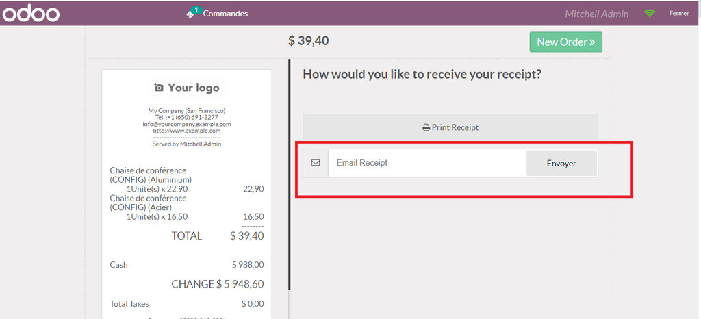 33- Application Point de Vente (POS): Possibilité d’envoyer l’email de la commande avant d’imprimer le bon au client encours