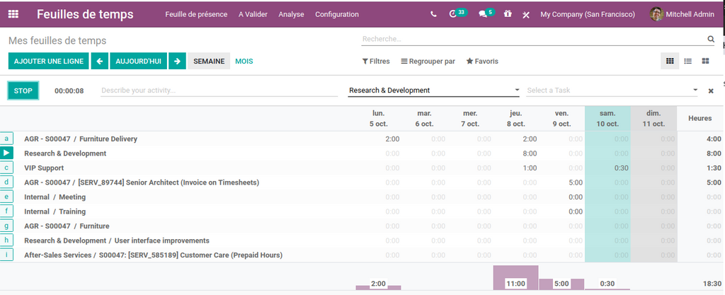 La saisie des feuilles de temps est nettement plus facile en ajoutant des raccourcis claviers .