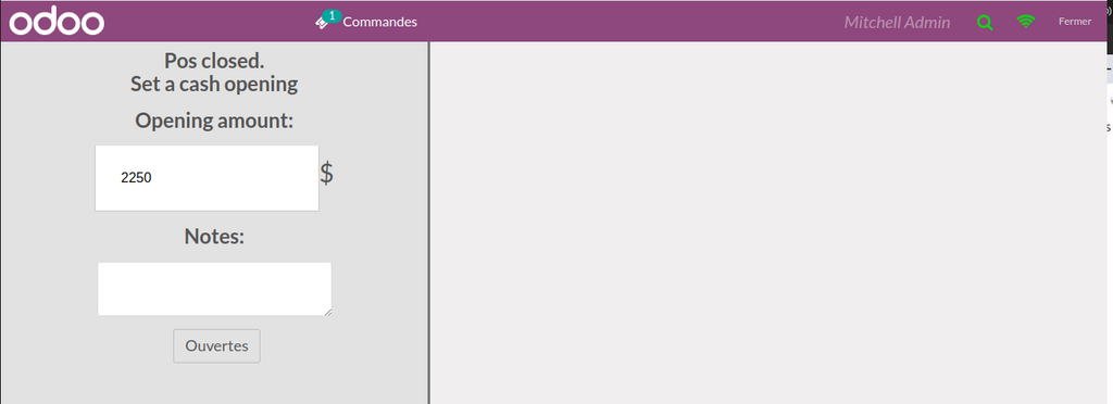 Point de Vente (POS) : Lors de l'Ouverture d’une session, il est possible d’entrer la balance d’ouverture .