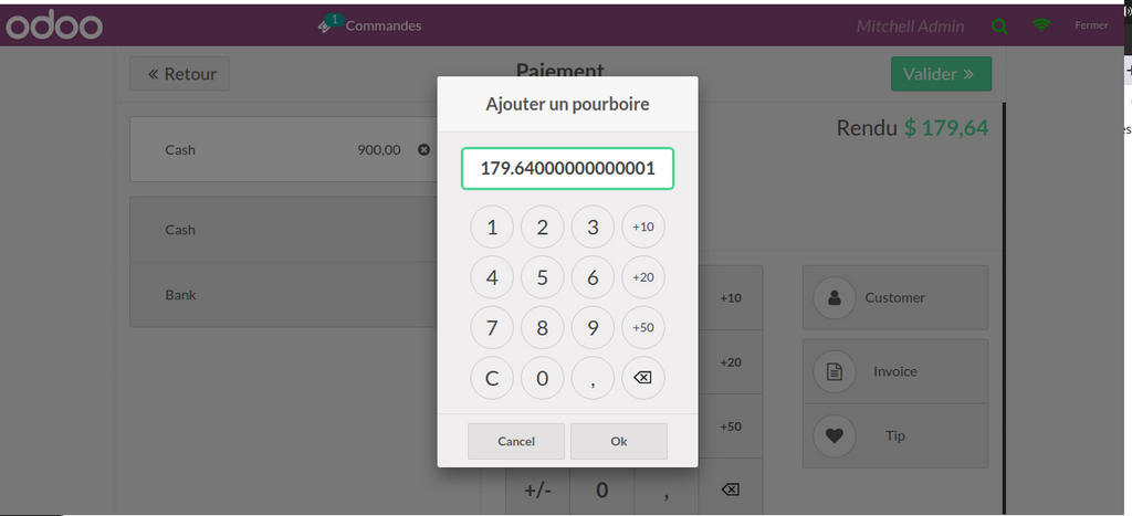 69 Point de Vente (POS) : Ajouter l’option pourboire (Tips) .
