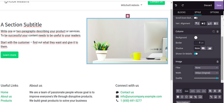Plusieurs améliorations ont été apportés à la partie CMS odoo , qui permettent de créer des jolis sites web, sans être un designer.