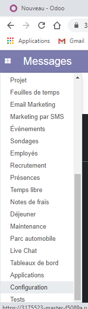 Pour activer le mode développeur , cliquer sur le le bouton principale d'odoo puis, cliquer sur Configuration .