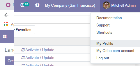 un message sera affiché vous indiquant que la langue est bien installé, il faut juste l'activer en allant en haut à droite , et cliquant sur l'image de notre utilisateur Michel admin, puis sur My profile , et cliquer sur Edit .